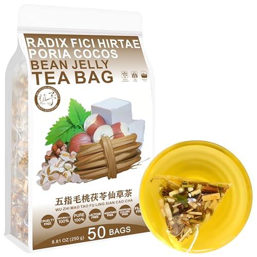 - "Radix Fici Hirtae Poria cocos Bean Jelly Tea Bag", Crafted From A Blend Of Phaseolus Calcaratus, Tartary buckwheat, Orange peel, Coix seed, Adzuki Beans, Cogongrass, Bean Jelly, Semen Euryales, Poria cocos. Scientifically Curated And Carefully Selected By Professionals, This Tea Is Made From Pure Natural Ingredients Without Any Additives. It Is Of High Quality, Free From Pollution, And Suitable For Long-Term Consumption By The Whole Family.
