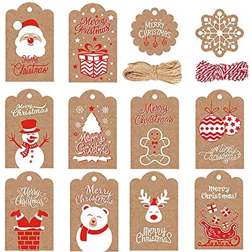• Package includes: 120pcs Christmas tags for gifts with 10 different style, such as: snowflake, bells, Elk, Christmas tree, and more, each style Xmas gift tag 10 pieces. And 1 roll red & white cotton rope, 1roll natural jute twine. Enough quantity meet your needs.