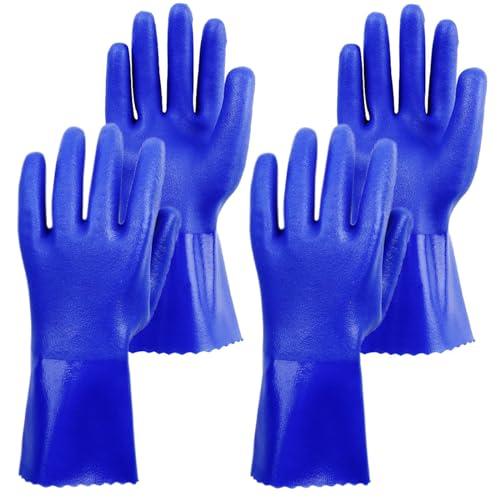 Generic 2 Pairs Rubber Gloves with Cotton lining, Non-Slip Household Cleaning Gloves, Reusable dishwashing gloves, winter work gloves (2 Pairs Blue upgrade gloves)