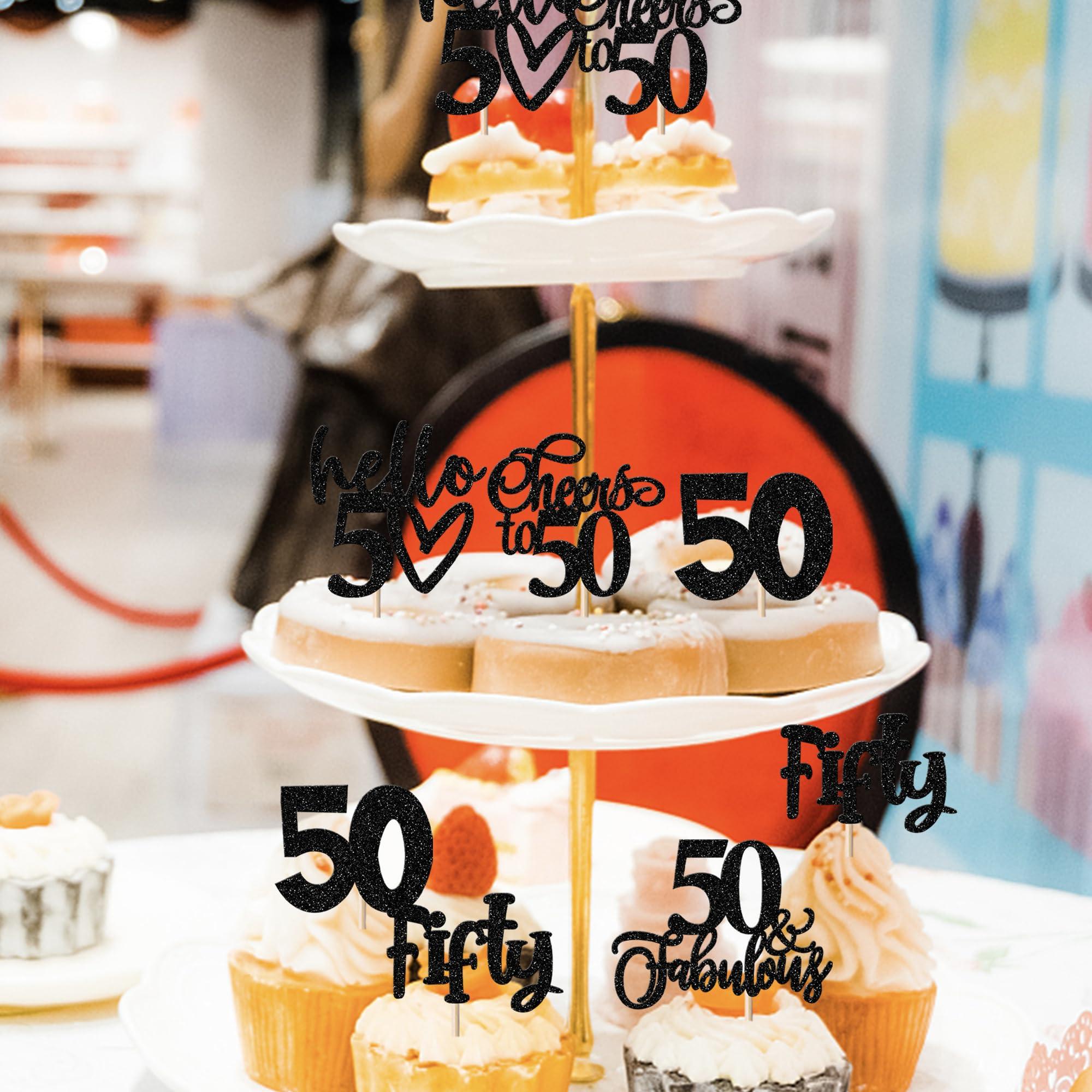 - APPLICATION:Perfect decoration for cupcakes,cookies,cakes,fruits,brownies,ice cream and more,particularly suit to use on 50th birthday theme party, 50th anniversary theme party, cheers to 50 theme party,50th retirement theme party cupcake decorations supplies