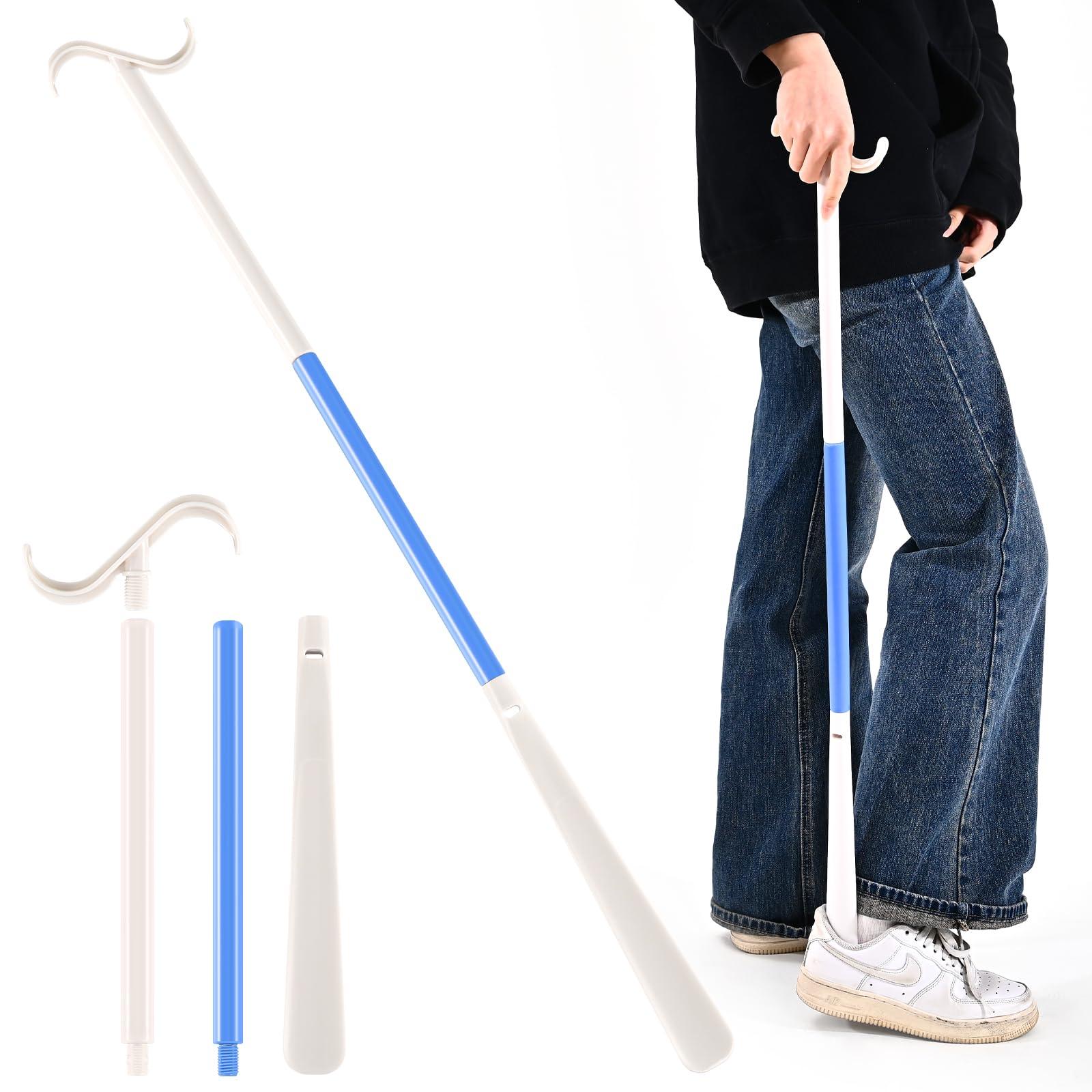 - Multifunction Long Handled Shoe Horn - Medical Supply Dressing Stick with Shoe Horn with Sock and shoe Remover Tool;Extended Reach Assist.Extendable dressing aid with shoe horn makes getting dressed easier from head to toe. Shoe horn on one end helps guide your heel into shoes, boots and slippers, saving you from bending and reaching. Opposite end features dressing hooks that help you pull on socks, shoes, pants and tops without straining.Easy-to-use sock assist tool makes dressing easier.