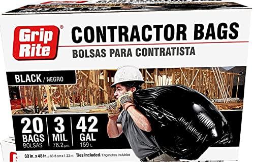 Grip-Rite All-Purpose contractor bags are a reliable choice for post-project clean up. Made from recycled plastic, these 3 Mil bags repurpose materials that would otherwise end up in a landfill, so they are good for the environment as well as for general construction trash & lawn clean-up.
