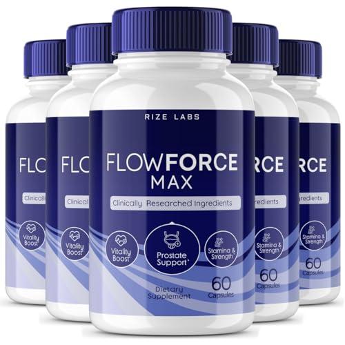 rize labs (5 Pack) FlowForce Max Pills, FlowForce Max All-Natural Dietary Supplement to Improve Strength, FlowForce Max Extra Strength Capsules to Promote Energy, Flow Force Reviews (300 Capsules)