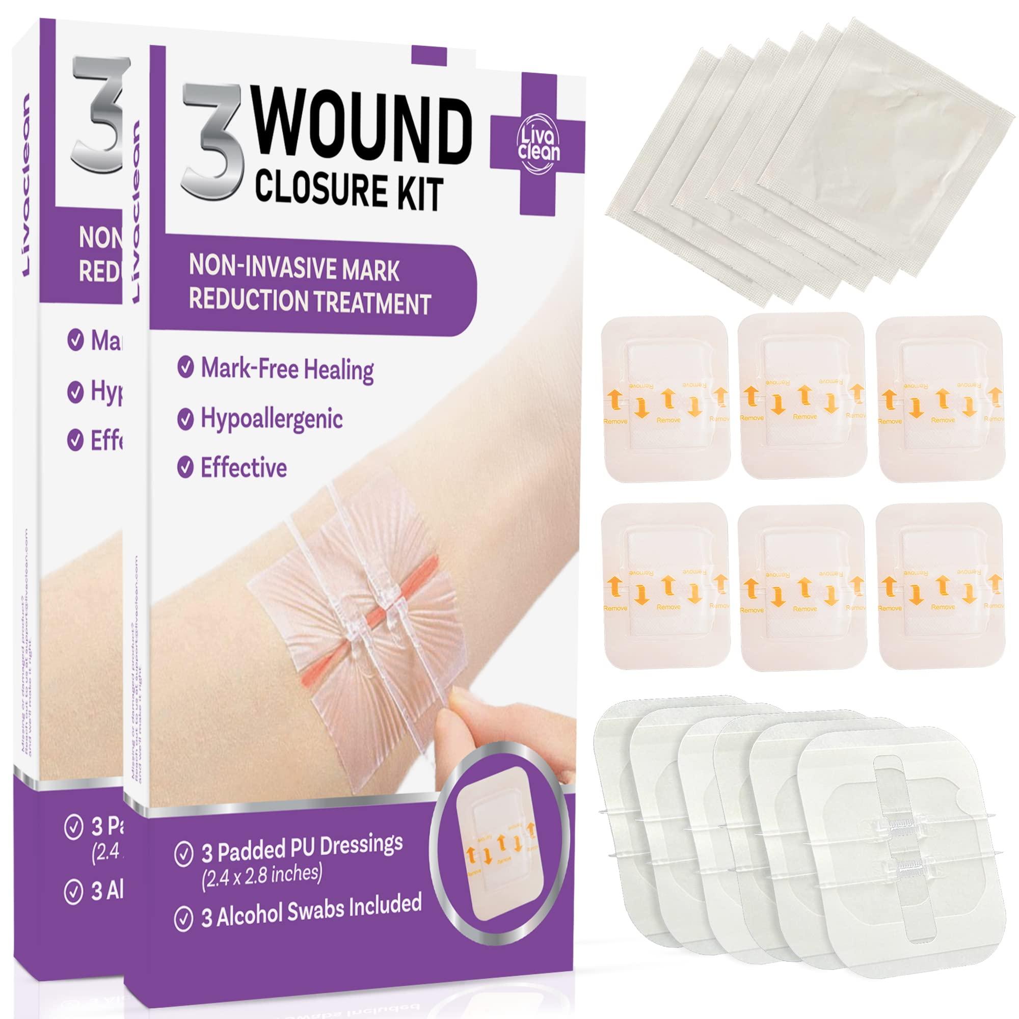 - BE PREPARED FOR ANYTHING - Our wound seal adhesive strips are recommended for lacerations and wound care, The kit includes 6 sterile wound closure devices and 6 units of PU dressings, along with 6 alcohol pads