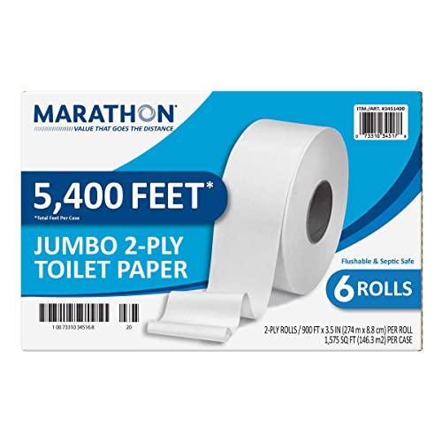 A Marathon Jumbo Roll Bath Tissue, 2-Ply, 900 ft Rolls, 6 Rolls