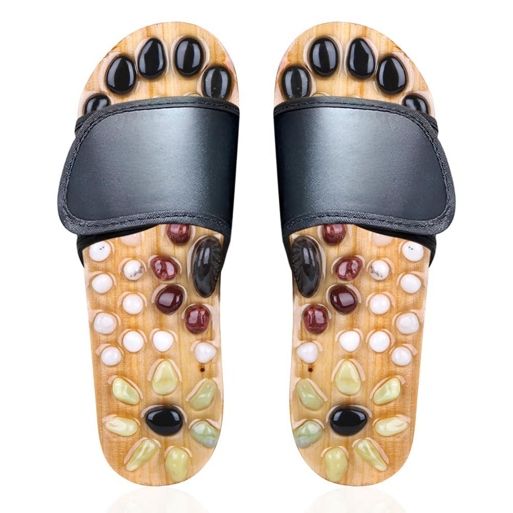 - NATURAL EARTH COBBLESTONE - Stress and fatigue cause imbalance in the body that leads to illness. Our acupressure slippers have natural earth cobblestones that help balancing your body by stimulating acupressure points on the soles of the feet which connected to different body parts.
