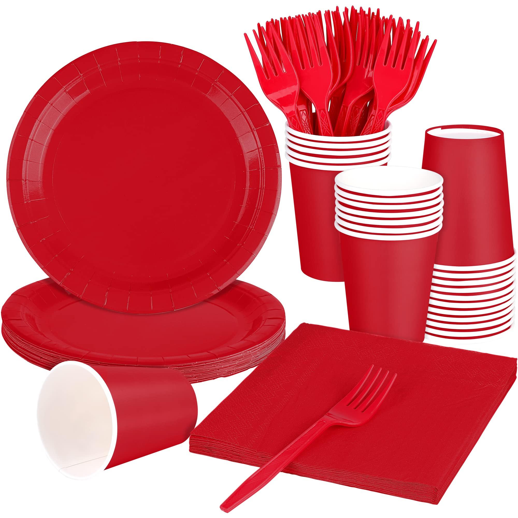 - Package content: each package comes with 24 pieces of red paper plates, 24 pieces of red napkins, and 24 pieces of forks, 24 pieces of paper cups, a total of 96-piece red party supplies; sufficient for you to enjoy your party with your guests