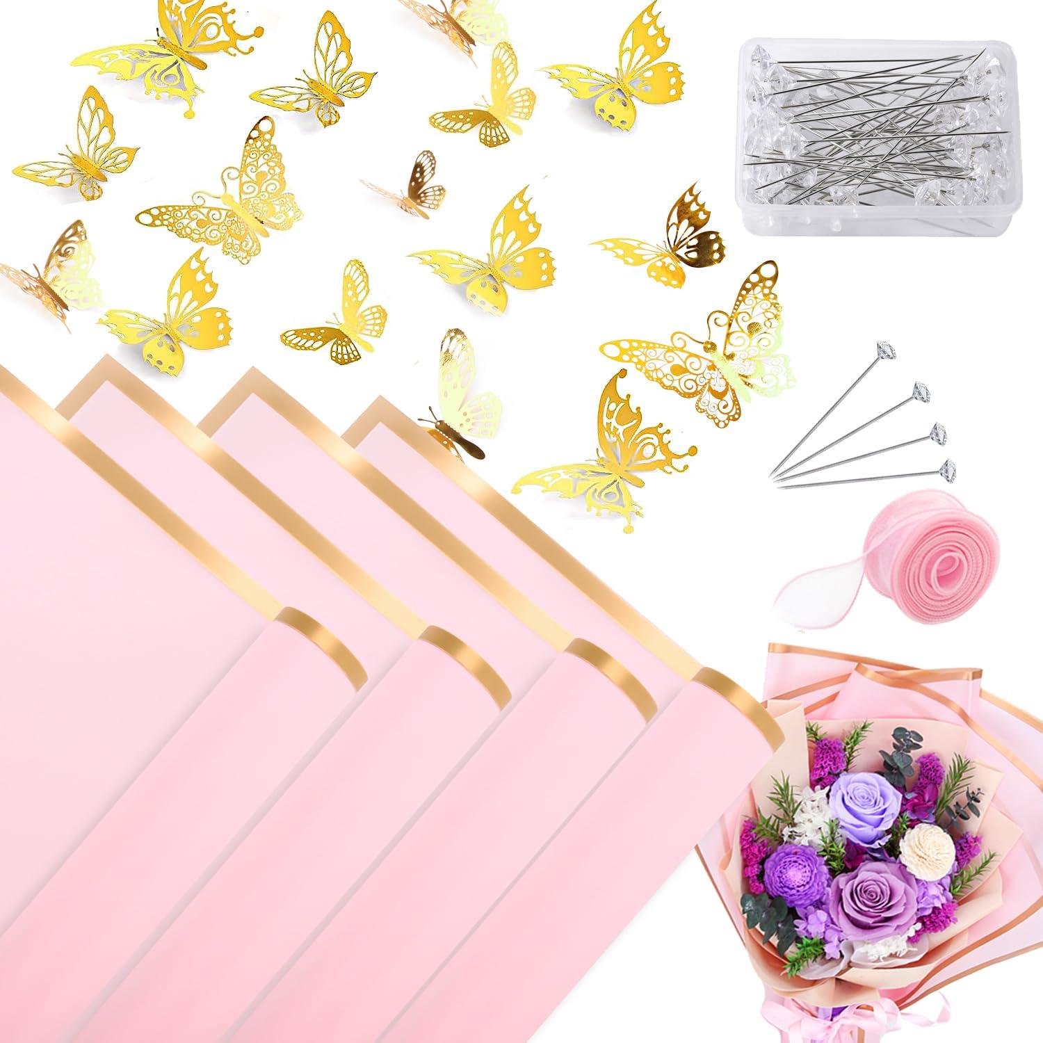 - Package Included: You will get 20 sheets of flower wrapping papers, 1 rolls of satin ribbons, 24 sheets of 3D butterfly decorations, 100 pieces of flower pins.