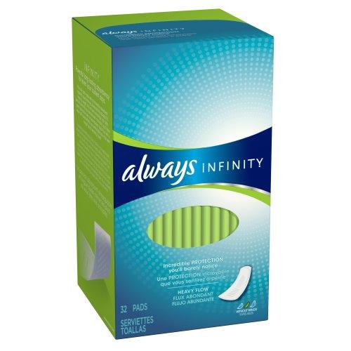 Always Infinity Feminine Pads without Wings, Super Absorbency, 32 Count - Pack of 2 (64 Total Count)