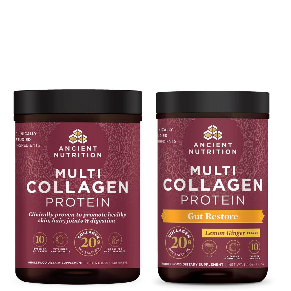 - You will receive (1) bottle of Multi Collagen Protein Powder, Unflavored and (1) Multi Collagen Protein Powder, Gut Restore by Ancient Nutrition