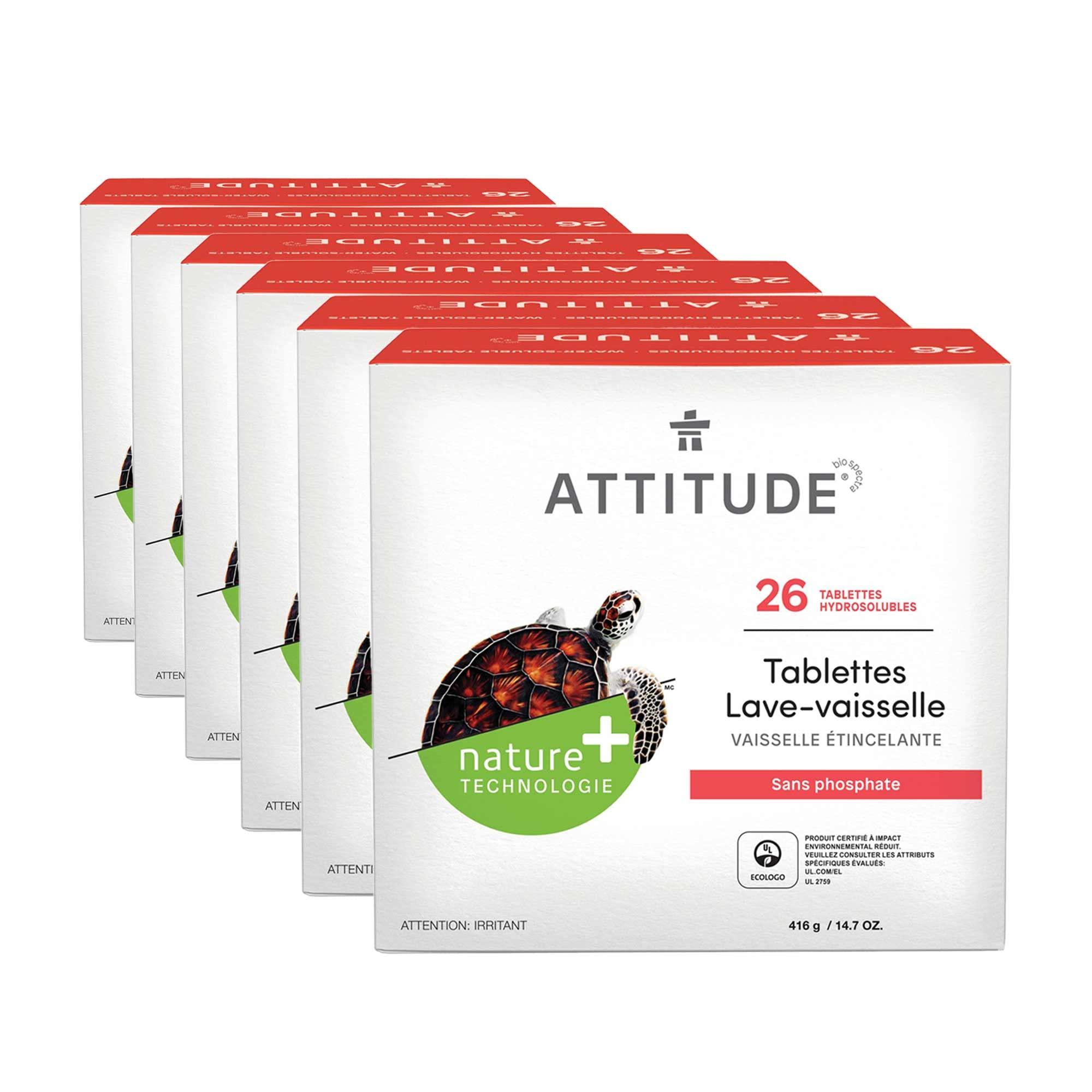 Designed for high-efficiency cleaning, ATTITUDE dishwasher tablets eliminate the toughest stains and rinse without leaving streaks or residue, keeping your dishes looking as shiny as new. They act as an anti-limescale agent that protects and extends the life of your dishwasher. Their packaging is made from 100% recyclable cardboard. The tablets are covered in a water-soluble protective film that dissolves perfectly during washing while avoiding unnecessary direct contact.