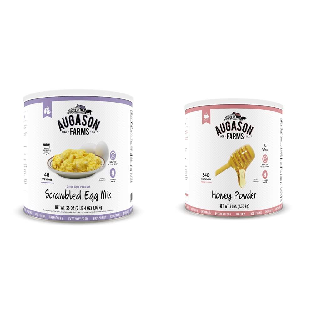 - Includes 46 servings of scrambled egg mix and honey powder blend for sweetening and flavoring.
