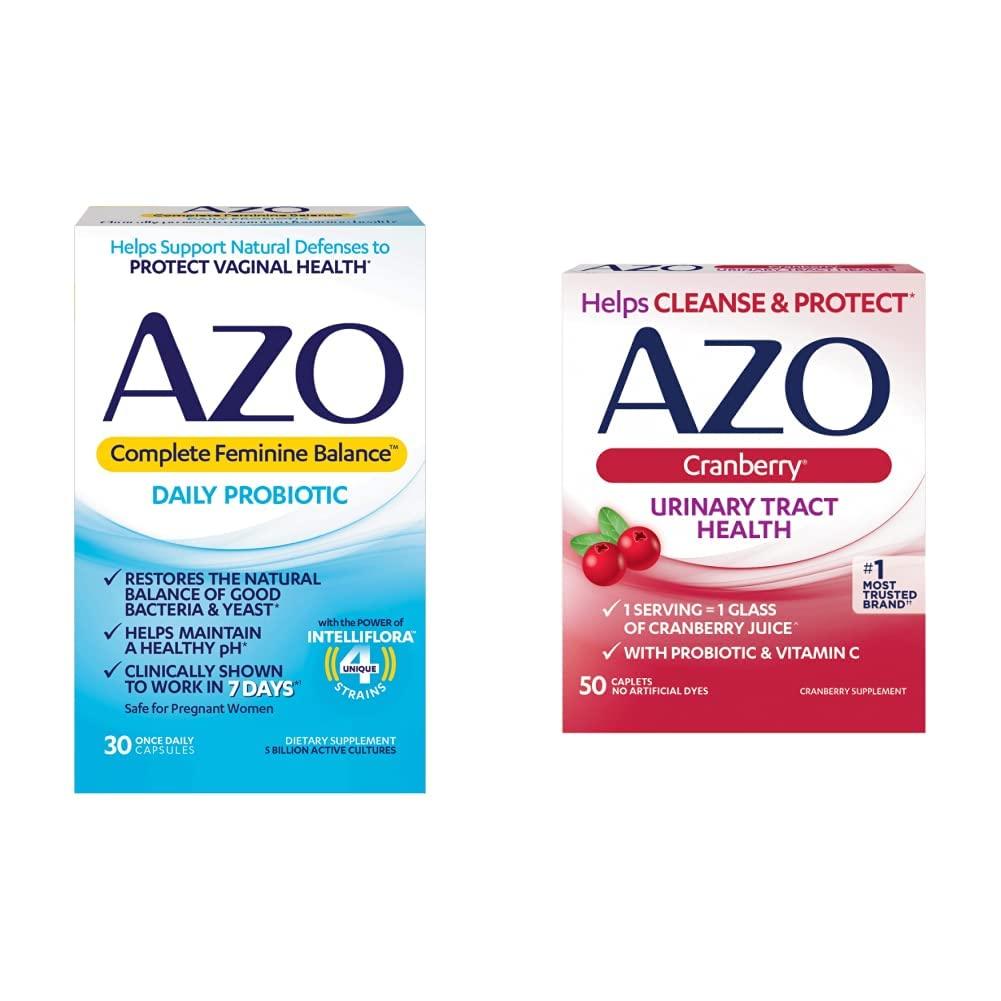 - Maintains vaginal pH balance and supports urinary tract health in one convenient bundle (AZO Complete Feminine Balance).