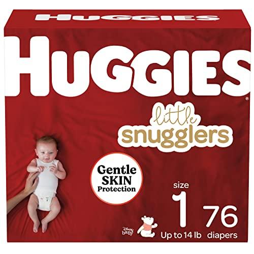 - Huggies Little Snugglers baby diapers size 1 fit babies up to 14 lb. (6 kg); designed for gentle skin protection; packaging may vary from image shown
