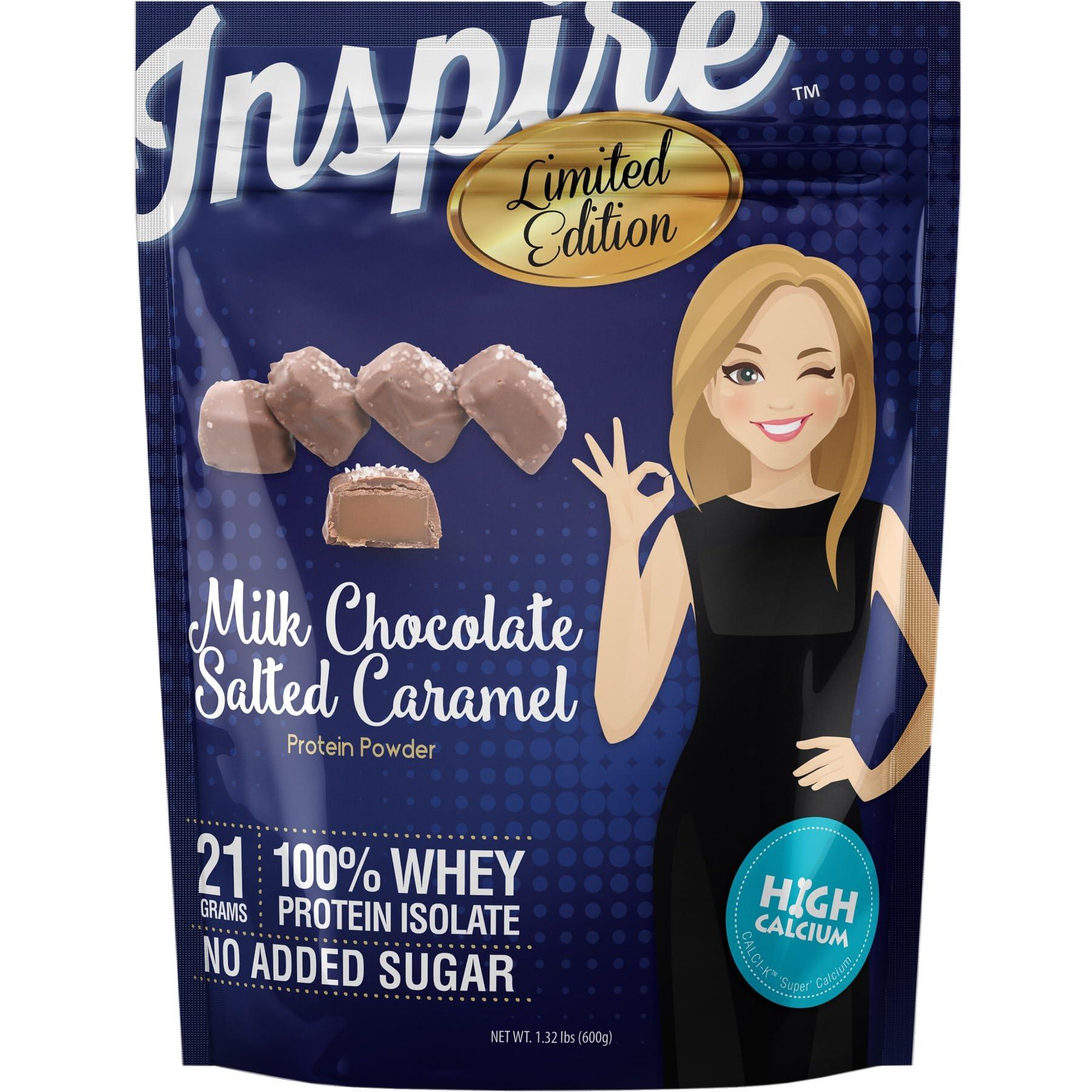 Oh wow, Creamy Milk Chocolate with Salted Caramel is BACK. One of our best-selling flavors of all time. Inspire Limited Edition Milk Chocolate Salted Caramel melts into a protein drink with a flavor like a rich creamy chocolate dream... it is decadent and scrumptious. We start with pure sweet clean clear whey protein isolate so the flavor of the gourmet milk chocolate shines... and then you taste the salted caramel!