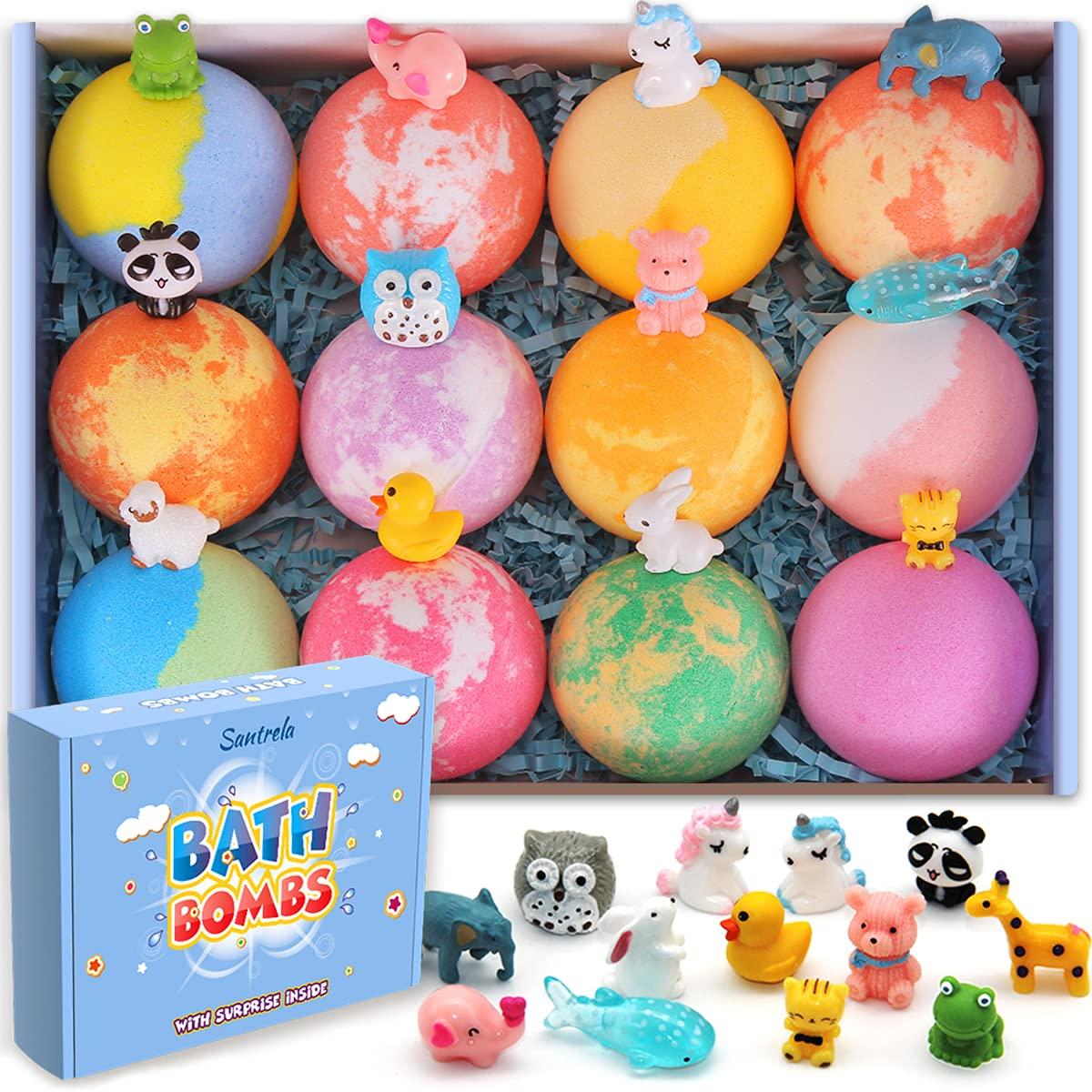 - ENJOY FUN BATHING TIMEColorful and bright bubbles, charming smells and surprise toys can help your kids fall in love with bathing. The soothing ingredients in the bath bomb can relax your kidsSuitable for children over 3 years old.