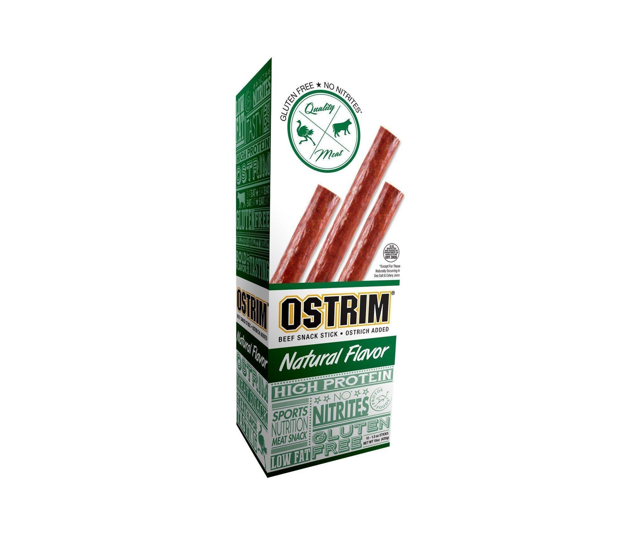 Natures' Food ProteinIf you're looking for a great tasting, moist, real meat protein from nature...eat OSTRIM! Ostrim high-protein meat sticks are USDA inspected, guaranteeing you a true and correct nutritional profile of quality and wholesomeness. Ostrim, nature's food protein, surpasses the protein source found in many sports nutrition products. Ostrim is also a good source of potassium and good source of iron.