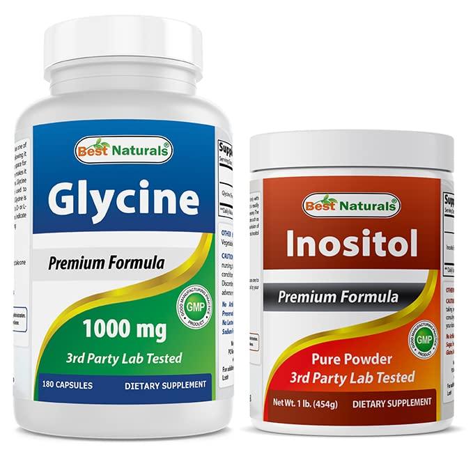 - 1000 mg of Glycine per Capsule - 180 Capsules per Bottle., Teaspoon (850 mg) of Inositol Powder per Serving - 534 Servings per Bottle.