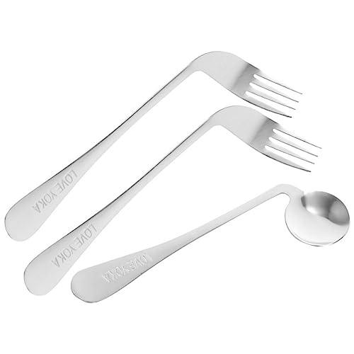 - Material:The auxiliary eating spoon and fork is made of stainless steel. Suitable for the disabled, the elderly, the sick, etc., the angled design can fit the angle of eating, making eating more convenient