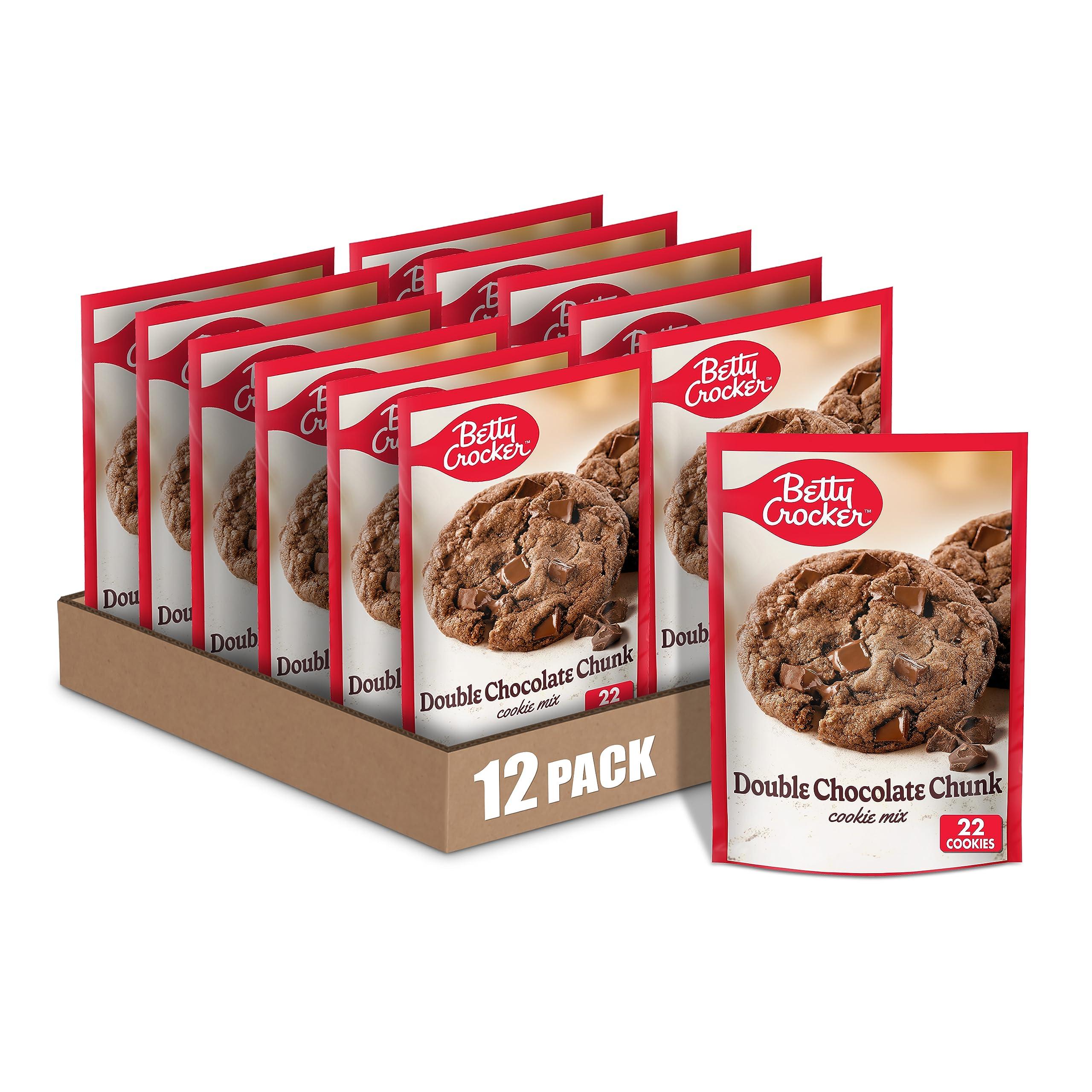 - CONTAINS: Twelve 17.5 oz pouches of Betty Crocker Double Chocolate Chuk Cookie Mix