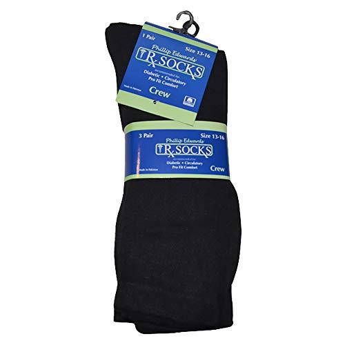 These diabetic mens socks are large so they are made to fit big and tall individuals and are sold in a bundle of 6 pairs and fit size 13-16. Phillip Edwards therapeutic diabetic socks are made from 80% natural cotton, so they breathe and are comfortable all year long, and are gentle for customers with sensitive skin. These XL mens socks can be worn as a regular casual pair of socks, dress socks, or black work socks. These extra wide socks for swollen feet have a unique, non binding comfort top which does not restrict circulation - perfect for customers with circulatory problems, diabetes, edema, neuropathy, etc. These comfortable socks are ideal for seniors and/or diabetics who dont want to have to wear tight fitting uncomfortable socks. These diabetic socks for men are available in either white or black.