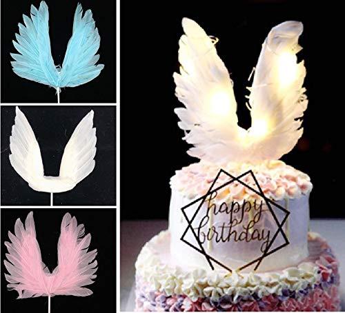 BlueSunshine Angel Wing Cake Topper Decoration With LED Light For Anniversary Birthday Party Wedding Baby Shower Birthday Party Favors (White)