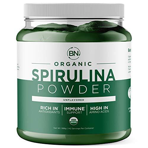 - Our Spirulina Contains Over 70% Protein Per Serving; BN Labs Spirulina Powder is superior quality and contains just the best 100% pure spirulina nutritive ingredient we could find. Rich in protein containing all the essential amino acids.