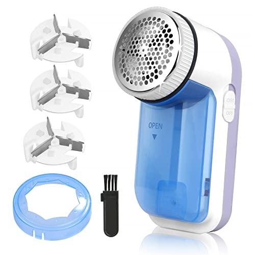 - [Quick & Effective Bobble Remover for Clothes] Fabric Remover features precision stainless steel rotary blades & 5w powerful motor makes shaving bobbles easier. A large work surface ensures it can quickly remove all types of lint, such as pills, fuzz, and bobbles from clothing, sofa, blankets. Equipped with two spare shaving blade beads, solve your troubles of finding replacement blades.