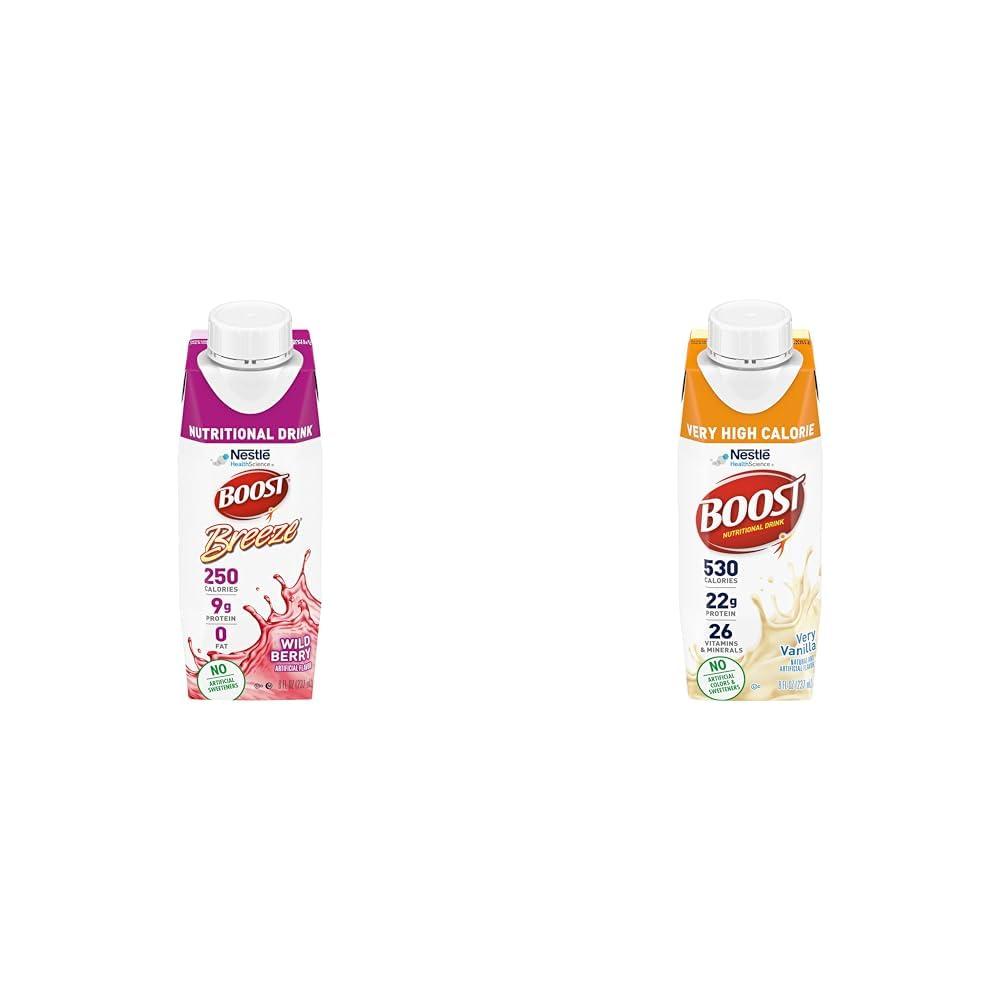 - Product 1: Enjoy A Variety Of Flavors: BOOST Breeze drinks have nutrition you need and are available in Orange, Peach, and Wild Berry flavors; Also available in mixed flavor variety packs