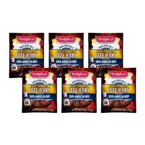 Bridgford Bridgford Sweet Baby Rays Beef Jerky Honey BBQ 3.25 oz Pack of 6 - High Protein Jerky for Midday Energy Boost or Post Workout Snack - Naturally Smoked Ready-to-Eat Meat Snacks for On the Go Snacking