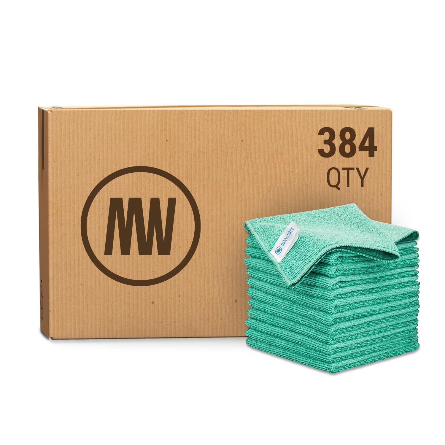 MW Pro Bulk Microfiber Cleaning Cloths Wholesale | Green - Case: 384 Quantity | Size 12\" x 12\" | Premium Microfiber Towels for Cleaning Glass, Kitchens, Bathrooms, Automotive