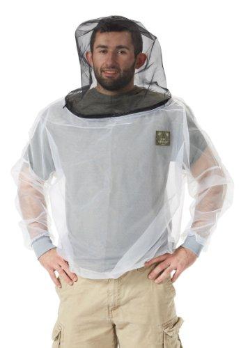 Protect yourself from bugs with Bug Baffler insect protective clothing. Bug Baffler insect protective clothing is perfect for all outdoor activities. This comfortable, roomy one-piece shirt gives complete upper body and head protection. Unique hood design allows plenty of room for a hat and is seamless for unobstructed vision. There's a convenient zipper in the front neck seam for easy access to your face. Soft elastic band at hip and stretch knit cuff at wrists ensure proper fit. Mosquito/blackfly barrier and protection against bees, greenheads, ticks, no-see-ums, etc. Bug Baffler clothing is comfortable, durable and easy to put on and take off. It has an ultra-fine, lightweight, polyester mesh construction that keeps out insects. Bug Baffler is completely safe to wear. It requires no chemical application or dipping in harsh chemicals. In heavily tick-infested areas the garment can be sprayed if necessary but prolonged use of spray may damage fabric. 100% made in the USA.