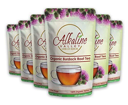 Alkaline Valley Burdock Root Tea Organic - 15 Unbleached/Chemical-Free Burdock Root Tea Bags - (Pack of 6) - Caffeine-Free, No GMO