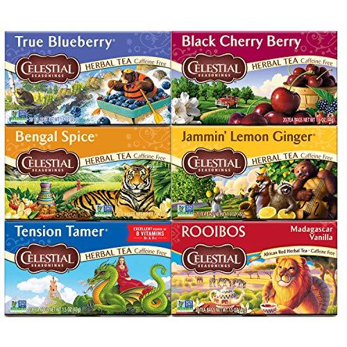This variety pack includes an Adventerous mix of herbal tea flavors: true Blueberry, Black cherry berry, Bengal spice, jammin' Lemon Ginger, tension Tamer, Rooibos.