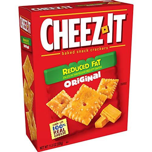 Feel good about satisfying your snack cravings with Cheez-It Reduced Fat Original Baked Snack Crackersbite-size cheese crackers that are baked with 40% less fat than Cheez-It Original crackers. Reduced Fat Original Cheez-It Baked Snack Crackers are the real dealmade with 100% real cheese that's been carefully aged for a yummy, irresistible taste. Each perfect square is bursting with bold, cheesy flavor that hits your taste buds with every crunchy mouthful. A baked snack, Cheez-It crackers are perfect for game time, party spreads, school lunches, late-night snacking and morethe cheesy options are endless. Go ahead and enjoy the satisfying goodness of your favorite, trimmed-down cheese bite. You'll love the feel-good flavor of real cheese in every tasty handful of Cheez-It Reduced Fat Original Baked Snack Crackers.