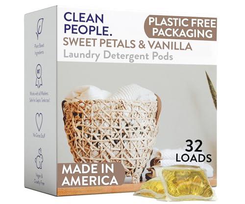 - GOOD FOR YOU, GOOD FOR THE ENVIRONMENT: Our eco friendly detergent pods are super concentrated so are smaller and lighter than traditional liquid laundry detergent in plastic jugs. Clean People comes in recyclable paper packaging. So no more plastic jugs in the landfill and no more phosphates, parabens, phthalates, chlorine bleach, artificial dyes, or ammonia in your your laundry!