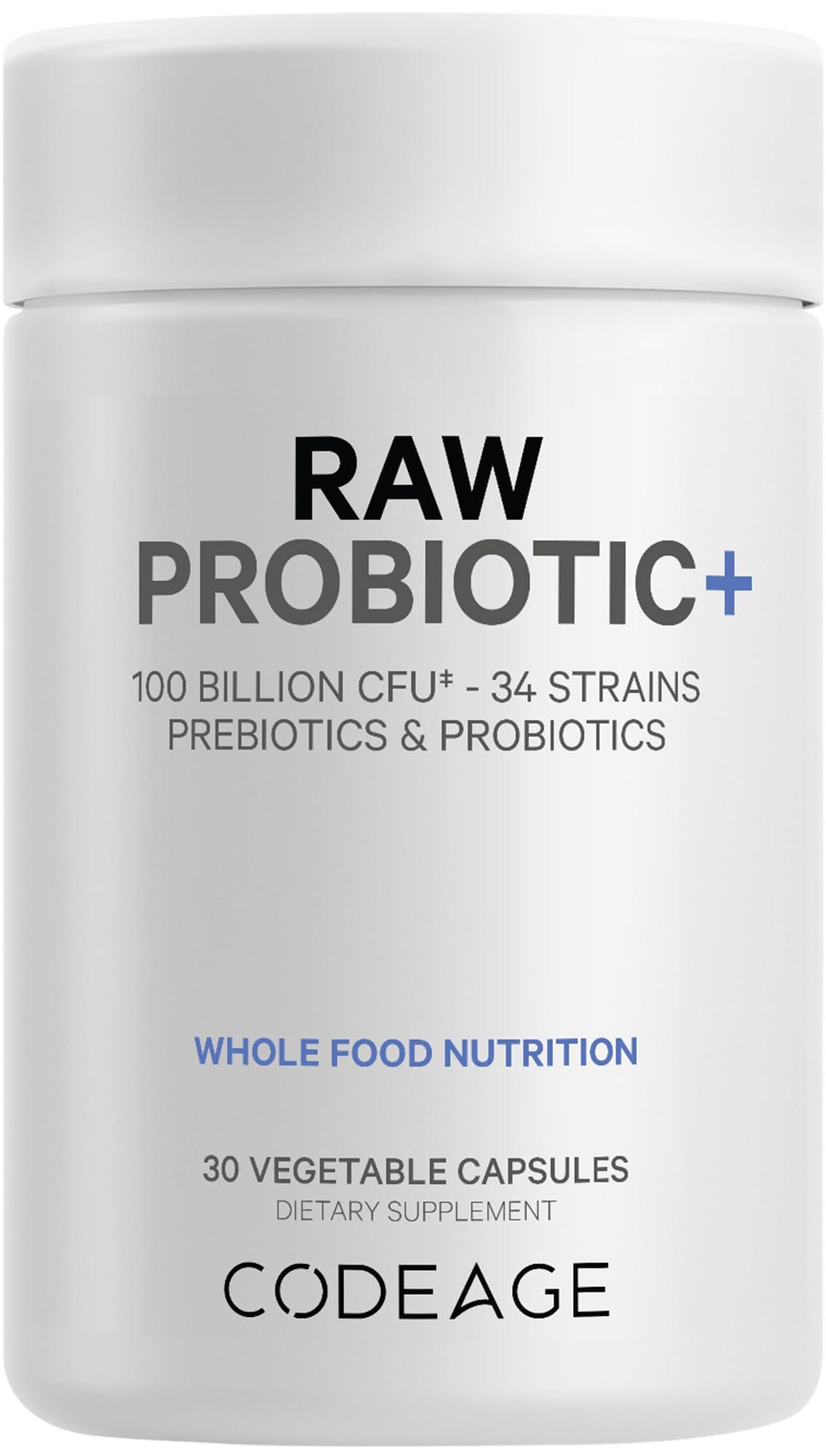 - Comprehensive Probiotic Blend: Codeage Raw Probiotic supplement provides a potent mix of 34 diverse probiotic strains, including Bifidobacterium lactis (BL-818), Lactobacillus acidophilus (SD-5221), and Lactobacillus paracasei (SD-5218), delivering 100 billion CFUs** per serving.