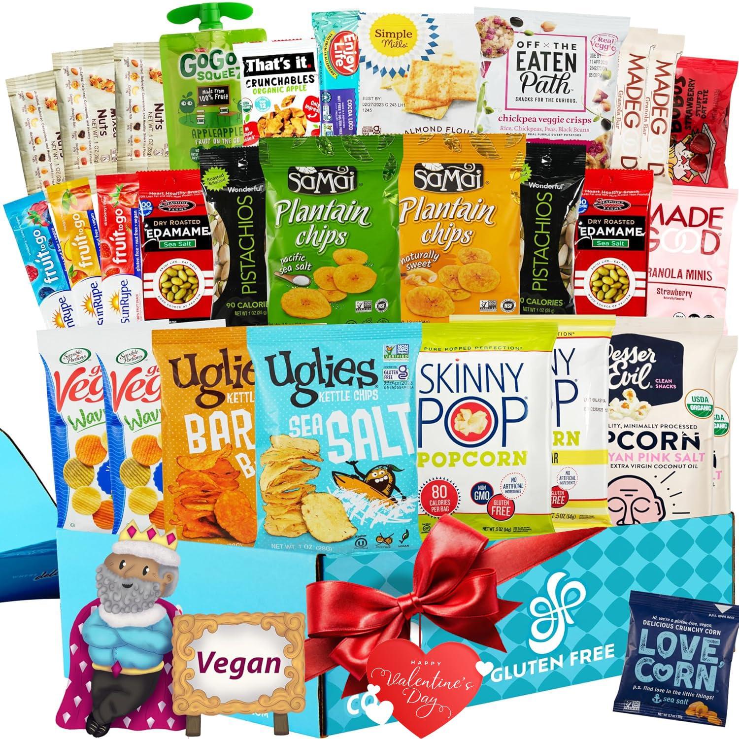 - SNACKS THAT FIT YOUR MOOD AND YOUR DIET: Its such a relief to know that all the college snacks are gluten free, dairy free, non-gmo, and kosher. No more squinting to find the Gluten Free or VEGAN label. Find the snack that suits your craving AND is good for you too! Perfect Valentines Snack Box that is healthy too!