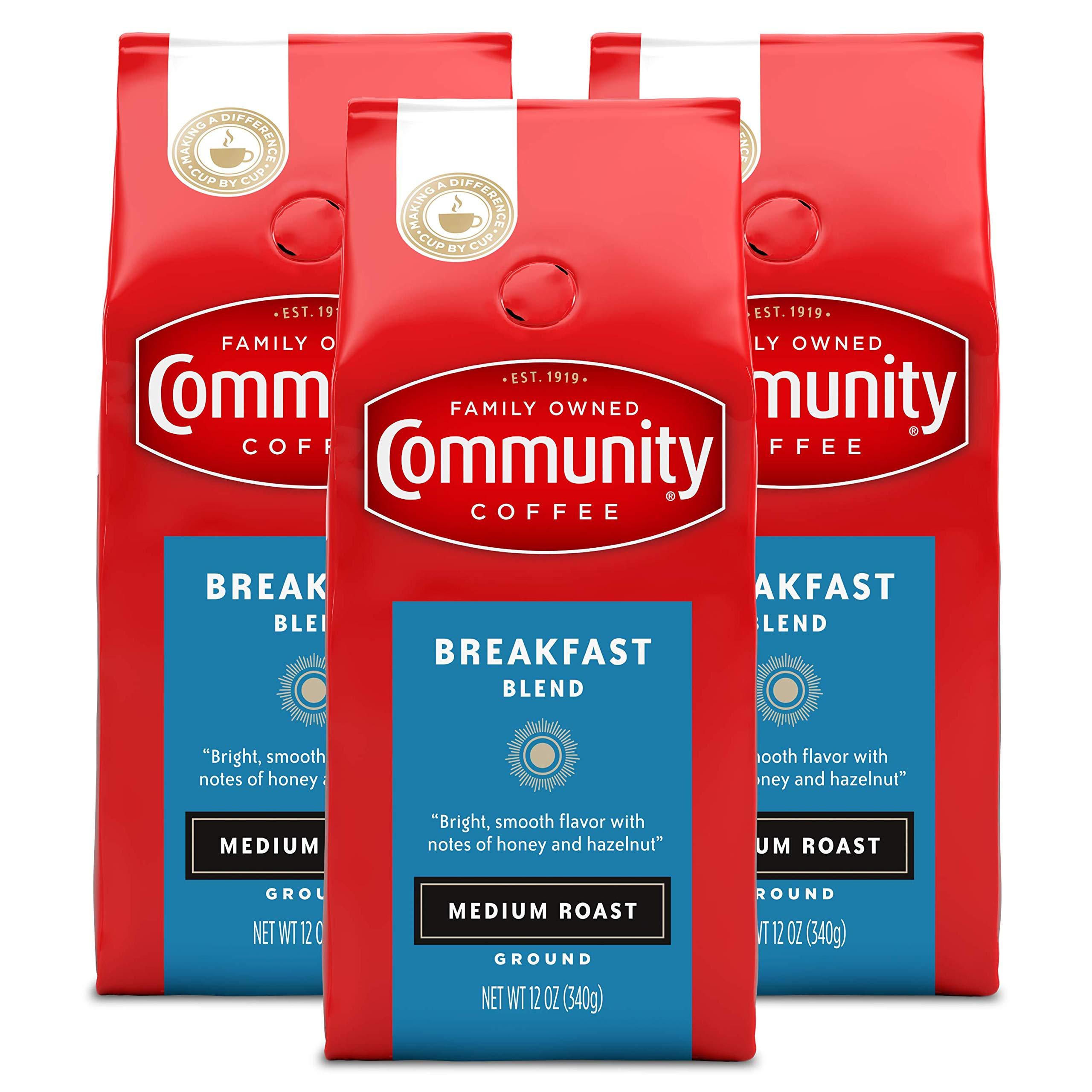 This aromatic, medium roast is sure to awaken your senses and follow with a smooth and bright finish. We purposefully source the beans of our Breakfast Blend to highlight the full-bodied flavors of South and Central America. We then carefully roast them to bring out notes of honey and hazelnut, developing a rich, smooth flavor that will make the first cup of the day your favorite. Made from only 100% select Arabica coffee beans. This product contains a 3 pack of 12 ounces of ground coffee. Perfect for using in an automatic drip coffee maker, for cold brewing or for pour-over coffee. About Community Coffee: Since Cap blended the first batch of Community coffee, weve seen plenty of change both inside and outside the company. Weve evolved to better serve our customers, but weve also tried to stay true to our roots and the community that got us started. Thats why for over 100 years weve maintained an unwavering dedication to making the best-tasting, highest-quality coffee we possibly can all while developing better methods of sourcing, superior roasting techniques and innovative ideas to keep our coffee at its peak of flavor and freshness. We simply love making coffee, and we find inspiration in every part of the process, from planting the beans to serving the perfect cup. Above all, we're inspired by the people we work with, the customers we serve and the connections weve built together.