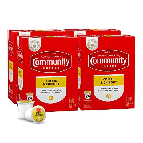 Born in New Orleans and raised on four generations of coffee expertise, our version of this Southern favorite combines rich, roasted Arabica coffee beans with high-quality chicory for a bolder, sweeter flavor than coffee alone. We recommend trying it Caf au lait style with steamed milk for a more traditional flavor. Enjoy the taste of our Coffee and Chicory medium dark roast (full body, medium brightness, rich and flavorful taste.) This product contains a 4 pack of 24 single serve coffee pods (Keurig compatible K-Cups--). Enjoy 96 cups of coffee. About Community Coffee Since Cap blended the first batch of Community coffee, we've seen plenty of change -- both inside and outside the company. we've evolved to better serve our customers, but we've also tried to stay true to our roots and the community that got us started. That's why for over 100 years we've maintained an unwavering dedication to making the best-tasting, highest-quality coffee we possibly can -- all while developing better methods of sourcing, superior roasting techniques and innovative ideas to keep our coffee at its peak of flavor and freshness. We simply love making coffee, and we find inspiration in every part of the process, from planting the beans to serving the perfect cup. Above all, we're inspired by the people we work with, the customers we serve and the connections we've built together.