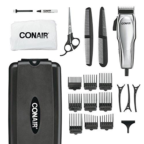 - PROFESSIONAL RESULTS AT HOME: The Conair chrome custom cut 21-piece haircut kit features a corded clipper with 5 position taper control and a powerful DC motor, providing 50 percent more cutting power