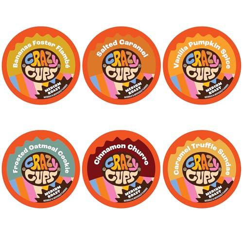 - Like Coffee Flavors, You will LOVE the Flavored Recyclable Coffee Pods Variety Pack from Crazy Cups. Delight in drinking these GUILT FREE (0 calories) Flavor assortment including Bananas Foster Flambe, Salted Caramel, Pumpkin Vanilla Creme, Caramel Truffle Sundae, Cinnamon Churro, and Frosted Oatmeal Cookie.