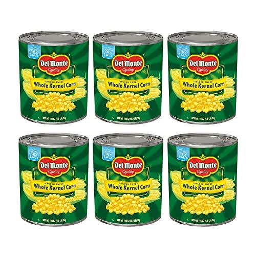 - Six 106 oz cans of DEL MONTE Golden Sweet Whole Kernel Corn Canned Vegetables