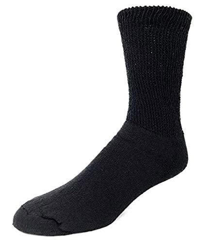 12 pair made in USA First quality.....NOTE: SOCK SIZES ARE NOT NECESSARILY THE SAME AS SHOE.IF YOU HAVE CONCERNS REGARDING: EDEMA,NEPHROPATHY, SWELLING,SENSITIVITY,ITCHING,DRY SKIN, OR FOOT AND LEG DISORDERS, PLEASE CONTACT YOUR MEDICINAL PROVIDER This brand of diabetic sock is considered MID-WEIGHT for more toe seam comfort. The thicker the sock ,the larger is the seam on the toe. This style has a terry lining in the foot area, but is not considered thick and uncomfortable. The weight for a crew style of this brand is approx. 20-25 oz. per dozen. Both thicker or thinner socks are available in other brands.