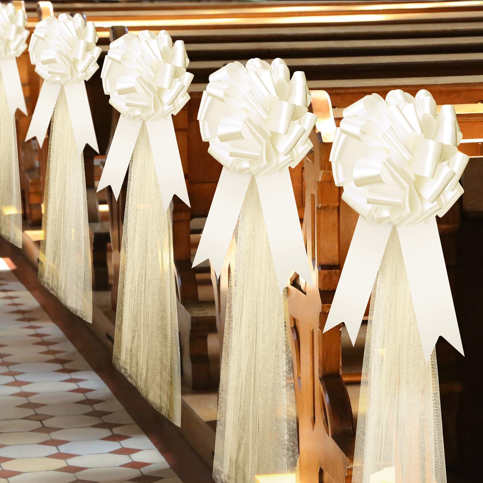 - Versatile Applications for Various Occasions: beyond serving as wedding aisle decorations, these ivory white tulle bench bows can decoratively transform church benches, chairs, entrances, doors, arches, gates, and railings; They are fitting for weddings, birthdays, Christmas parties, baby showers, Mother's Day celebrations, anniversaries and more! They work to vitalize your important day, adding a romantic and fresh atmosphere