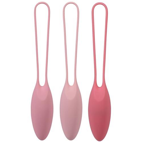 - Comes with Three Kegel Trainers in Varying Weights for Gradual Training: 45, 55, and 65 Grams