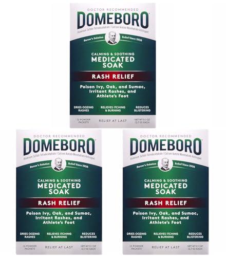 Domeboro Soothing Soak Rash Relief Poweder Packets, 12 each (Pack of 3) - Domeboro Astringent Solution is ideal to have on hand for first aid situations. Use it to help treat various symptoms of skin irritation. When applied, this Domeboro astringent powder dries out the skin to prevent redness, blistering, and itching. It's easy to use and can be dissolved in cool or warm water. Use the solution in a foot bath to relieve symptoms of athlete's foot. It can also be used to soak a towel or bandage for a compress or a wet dressing for the affected area. This Domeboro Astringent Solution is available in a box of 12 packets. Warnings: For external use only. When using this product: avoid contact with eyes (If contact occurs, rinse thoroughly with water); do not cover compress or wet dressing with plastic to prevent evaporation; in some skin conditions, soaking too long may overdry. Stop use and ask a doctor if: the condition worsens or symptoms persist for more than 7 days. Keep out of reach of children. If swallowed, get medical help or contact a Poison Control Center right away. NDC Code(s): 16864-240-01