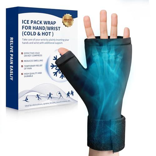 - Reusable Wrist/Hand Ice Pack Wrap: This ice pack is specially designed for carpal tunnel relief. The hand cold pack wraps around the hand, thumb, and wrist, uses an elastic band and velcro to fasten to the wrist, very easy to use which makes this gel injury ice pack a universal perfect fit for both men & women. This ice pack is for hands-free application and a full range of movement can be used sitting, standing, or lying down, It is great for home or gym use.