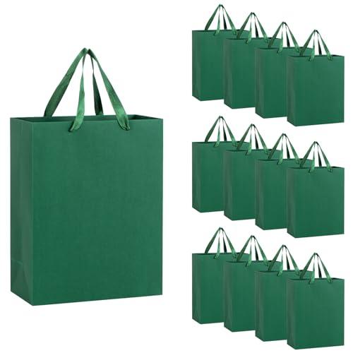 driew Large Dark Green Gift Bags, 12 Pack Extra Large Deep Green Gift Bag Ribbon Handles Heavy Duty Paper Gift Bags 10x5x13 inches Party Gift Bags for Shopping, Pakcing,Retail