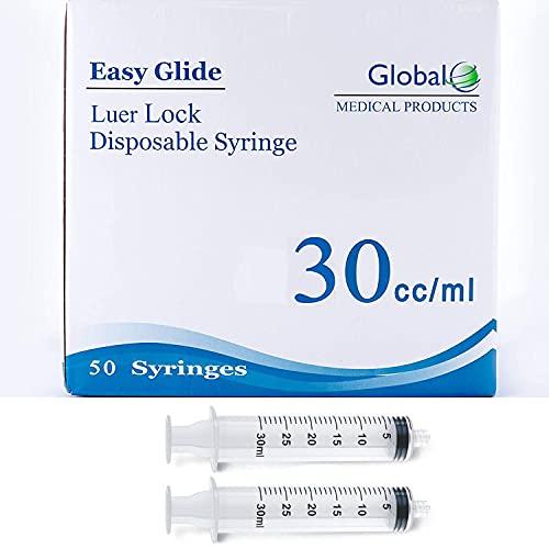 - PACKAGE INCLUDES: (50) Disposable 30mL Luer Lock Syringes - No Needles